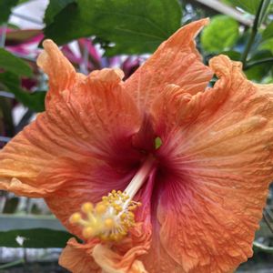 ❊❊--6月5日(水)☀️☁️--❊❊ ✻今日咲いている花✻ ①18 ②ピンクバタフライ ③バイロンメッツ ④レッドカーネーション 1枚目の画像。 大輪 花弁がヒラヒラ 鮮やかなオレンジ色が特長 このこの名前は?