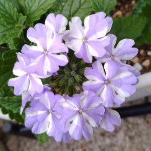 ❁. 。スーパーベナ'アイストゥインクル'。.❁ ラベンダーブルーにホワイトの ストライプ模様が入る爽やかなバーベナ🎐 スーパーベナは花が大きく こんもりと綺麗に咲きます◌̥*⃝ 病気に強く夏の暑さにも強いので、 秋頃までたくさんの花を咲かせてくれます💜 夏花壇にぜひいかがでしょうか☀︎ *育て方* 日当たりの良い場所を好みます☀️ 水やりは土の表面が乾いたらたっぷりあげてください。開花期は週に一回程度液肥を与えてください🌱