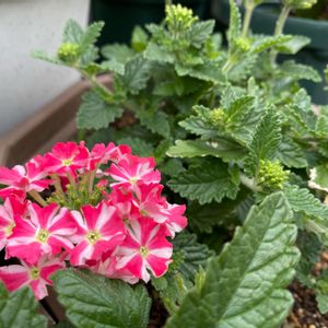 PWスーパーベナ コーラルトゥインクル 植え付け遅れて待機中に水切れして危うかったけどさすがPW 復活して開花✨ 満開楽しみ😊