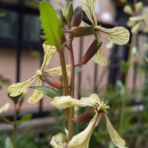 ルッコラの花 咲かせました😅 正直な話 毎年この黄色に赤紫色の筋の入った花を見たくって 😋<🥺 種蒔きするところあります🤪🥰🥰🥰