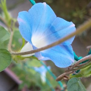 畑から拾ってきた朝顔の種 毎日カメムシ退治をした甲斐あって 今朝は7つ水色の朝顔が咲きました。 でも、本来のものより随分と小さぁ~い😲 3cm強なり