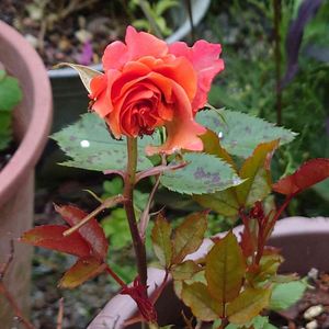 こんにちは😊 今日は時々⚡ゴロゴロの不安定な天気です⋆̩☂︎*̣̩ 多少蒸し暑いけど少しホッとできます😊 一昨日蕾を見つけて🤳パシャ❣️ あっという間に開花です\(ᯅ̈ )/ ひと回り小ぶりで色もイマイチだけど幾つか咲いてくれて癒してくれてます🌹