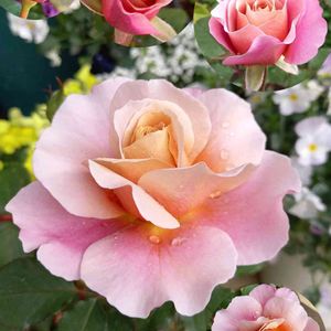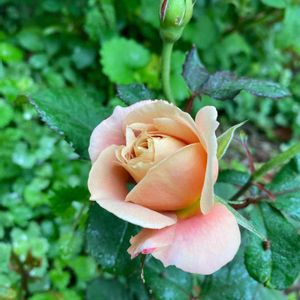 おはようございます☔️ 2枚目は 今春の薔薇🌹 3番目の開花は お馴染みの ディスタントドラムス💗🧡 雨に濡れても綺麗です🌹💓💓