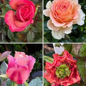 素敵な雨曜日 今日は開きかけてきた花びらに 冷たい雨の洗礼♡ 雫をまとってキラキラでした ①②ブラウンピンクのジュリア ③グラデーション美人ディスタントドラムス ④杏色のアプリコットキャンディ ❀.(*´▽`*)❀.