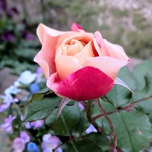 バラのディスタントドラムスさん咲きました!🌹 我が家の本年度初開花バラさん 2枚目は昨日の夕方時点 バラが咲くとそのエリアに華やかさがでますねぇ🥰