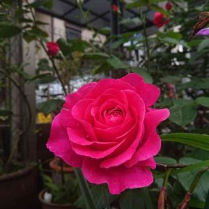 マリー・アントワネットさま😁。 綺麗な紅色です❣️。茎がかよわく花が重い。上向かせるの大変❗😁。