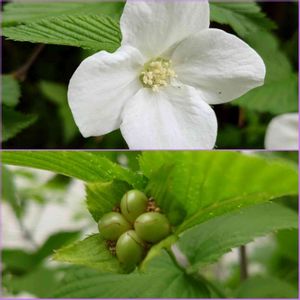 こんな花が咲いて、こんな実が成る👌。シロヤマブキさん、今は結実期ですが、少し前までは花も咲いてました😁。今度の冬には真っ黒な宝石に❗❣️。
