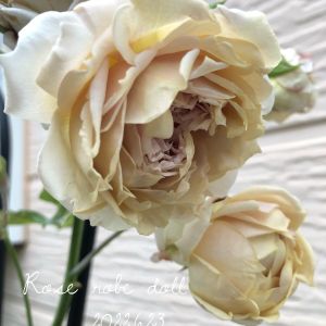 昨年に引き続き、1番花は総ボーリングで、私を打ちのめした『ローズ ローブ ドール』 2番花は、皆様のお庭同様、うちのご令嬢も楚々と咲き出した。よく見ると、スリップスの被害で花弁汚れているけど、よく見なければ良い問題←なんか投げやり 右側に映り込んでいるアーチに誘引していたんだけど、1番花が咲かないのに、この場所を任せることはできないので、ザックリ切られて解任。来年は場所移動予定。