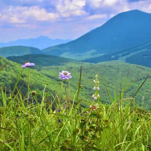《山の思い出・過去picシリーズ》 どう転んでも今年は山らしい山には行けないので、昔の山に咲く花達のpicです⛰ マツムシソウとツリガネニンジンと山の風景⛰