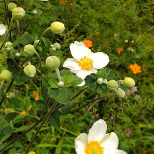 【シュウメイギク一重白】残りは八重の白と貴船菊が未だ咲かない。