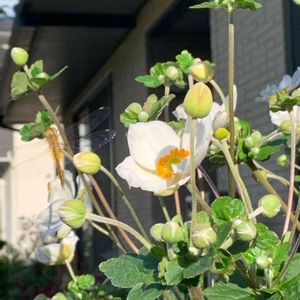ピンクのシュウメイギクに引き続き、 白いシュウメイギクもようやく咲いてくれましたー😊😊