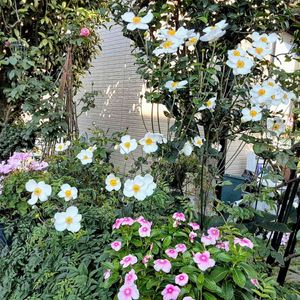 こちらは3年前のシュウメイギク! 東側の駐車場横の狭い東側の庭😅 夏の照り返しや酷暑から 水やりで何とか大切に 咲かせてきましたが… 昨年の台風で 色んな原因から 薔薇や宿根草はと共にさよなら してしまいました😢 今年の一株は 同じような場所から 二株生えてくれましたが 一株は夏を乗り越えれず さよなら😢😢 咲いてくれて ほんとにありがとう☺️ 来年に向けて続いてくれると 嬉しい😃✨