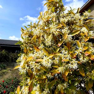 シキミの花かしら? 通り道のお宅の隣の畦道に 散歩道での出会い 昨日の1枚