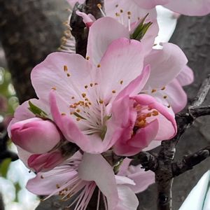 こんにちは😃 ①②③④⑤ アーモンドのお花🌸🌸 綺麗😍に咲いてますが、明後日には 根本から切って貰いお別れします😊 夏になると電気虫🐛が付き 名残惜しいですが今年で終わりにします🌸カットして家に生けました 今迄ありがとうです🥰🌸🌿