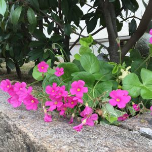 今日のお花 🌸オキザリス🌸 撮って出し感満載❣️ 大きな花がよく咲いてます。 オキザリスボーウィー とか、ハナカタバミとか言いますよね! 葉がハート型なのが可愛い💓💞