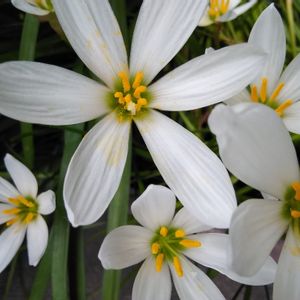 涼しくなって,一斉に咲き出しました.白のゼフィランサスです.おなじプランターにピンクと黄色が同居しています.黄色が少ないので,種を播いて増やそうと画策中です. 撮影 Sep. 16, 2020