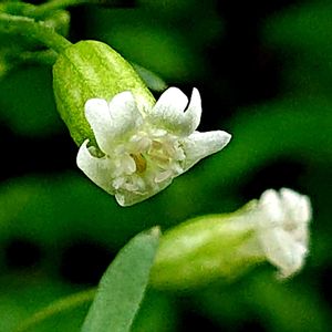 フシグロ(女婁菜) ナデシコ科 ずっと探していたのですが、意外と身近にあって驚きました。ですがたった一つだけ咲いていました🥰 この科の大柄な植物としてはひどく地味な花を咲かせます。 高さ0.3-1m、葉は3-10cmの披針形~卵状披針形、先は尖り縁毛が見られます。 花は茎頂や葉腋に付き、花径は6-8mm! 無柄、花弁の先端は2裂、萼筒は0.7-1cmで10脈があります。 果実になっても可愛い😍💕💕 📝茎や葉、花柄、萼などに短毛が見られるものは、ケフシグロと呼ぶようです。