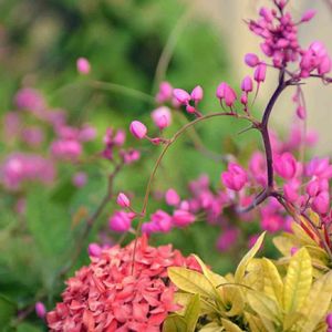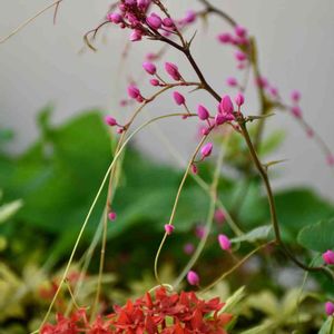 💕アサヒカズラ💕 タデ科アンティゴノン属 別名 ニトベカズラ クィーンネックレス 珊瑚藤 花言葉 愛の鎖 (5月11日公園の温室で撮ったもの) 19日はピンクの日に、淡いピンクですが… 参加します💖