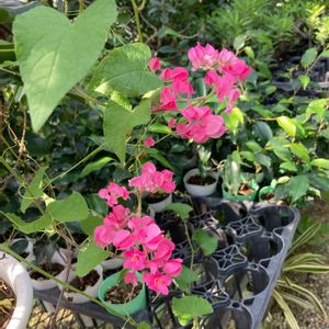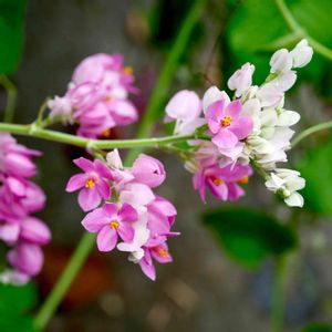 アサヒカズラ タデ科 アンティゴノン属 別名 サンゴ藤 クィーンネックレス 花言葉『愛の鎖』 メキシコ原産 『日本では夏季に鉢花として 出回っている。蔓の成長が早く 10mを超える事も有る。 初夏から秋に藤の花に似た花を 咲かせるそうです』!💓