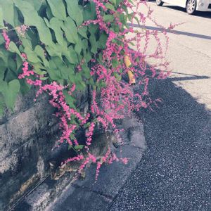 真夏に道端でよく見かける、つる状にぴょーんと伸びているピンクのお花𓍯𓍯 名前がわかる方教えて下さい🧸♡