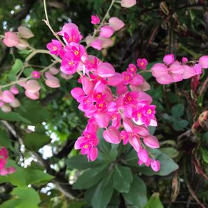 アサヒカズラ(クィーンネックレス) これが開花状態なのか よくわけらないけど ブーゲンビリアに似た感じの花が 沢山咲き始めました 目のさめるような鮮やかなピンク
