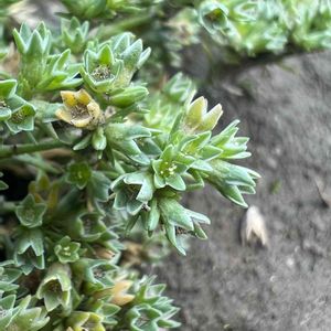 こんなコを見つけました✨ 硬くてツンツンゴワゴワ 花弁がなく緑色のガクが花、黄色ぽいのが実。シンプル・イズ・ベストのかわいいコ。 「シバツメクサ」