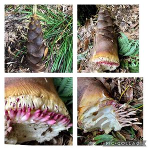 前回の掘り忘れ?のタケノコ。 50cmほどになっていた。 掘ってみたが、やはり硬すぎてダメだこりゃ。 小豆みたいな赤いブツブツも、ブツブツ通り過ぎてニョロニョロになっているし。 赤いブツブツって、成長したら竹の根っこになる部分だったのね。 初めて知った。