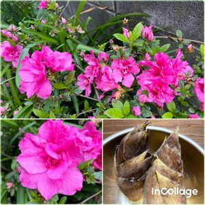 我が家の裏庭のツツジさん💕 なかなか、裏庭まで行きださんけん、 ビックリドンキーじゃったぁ〜😆😅 いつの間にか、咲いとらしたぁ〜😅 タケノコばもろうたよぉ〜😆 初モノぞなもしぃ〜💕😅😄