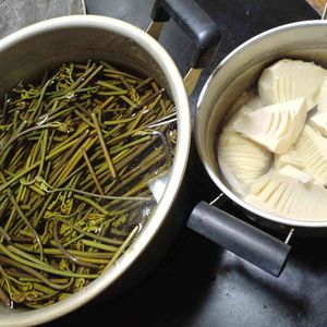 帰宅後の山奥自宅台所にて どんだけ採ってくれば気が済むのだろう この時期、毎日続く山菜御飯 老母と二人の量じゃないし... 山菜料理をせっせと同じ山奥暮らしの仲間に配って歩く老母 元気で何より 今日もおつかれ 今日もありがと