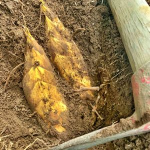 息子撮影 うちの山は南に傾斜がありますので、息子が昨年の12月から 時々 孟宗竹のタケノコを掘ってきます。 今日は仕事が早く終わったので 山掃除に行き 双子ちゃんを見つけたそうです。 息子の堀棒はタケノコ掘り専用のものではなく、小学生の頃 子どもが使いやすいようにと 夫が渡したツルハシです。几帳面な夫に輪をかけて慎重に完璧に掘るのが息子の流儀です。 大雑把な私には全く似ていません。 いつもお優しいお心をありがとうございます。よろしければ 掘りたて お召し上がりくださいませ。 どうぞ佳き弥生3月になりますように。 まだまだニンジン🥕出荷当分続きそうです。