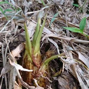 笹の葉の新芽がタケノコ状になっていた。 初めてみた。 変なの?ふつーなの?なんなの?