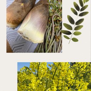 ※コシアブラ ウコギ科コシアブラ属 日本特産 北海道南部から九州まで分布する 花期8〜9月 円錐花序、両性または単性の花 ↖️大きくなりすぎたものを撮影の為に採りました ※タカノツメ ウコギ科タカノツメ属 北海道南部から九州まで分布する 日本特産 雌雄異株 芽吹きには葉に毛がなく艶がある ※たらの芽 ウコギ科タラノキ属の新芽 落葉低木 在来種 北海道から九州まで分布する 花期8〜9月 花弁は三角形で5枚 自家受粉を防ぐため雄しべが先に落ちた後雌しべが熟す ※タケノコ イネ科タケ亜科タケ類 在来種 ツル性を除く被子植物のうち最も成長が早い 4月14.15日撮影