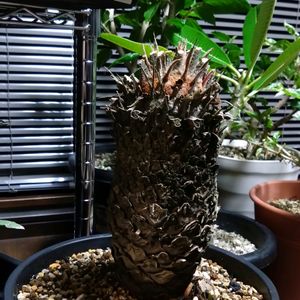 霜に当たって変色した蘇鉄です😐このあと次第に茶色くなります。5月くらいまでそのままか、葉っぱをカットして丸坊主にします。すると6月頃に新芽が出てきます🌴 以上です🙇