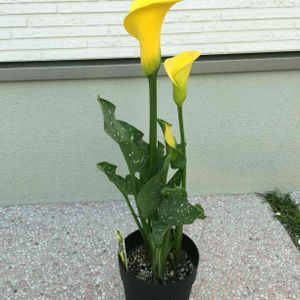 何年も咲かなかったカラー咲いた✨ 最初白っぽかったのに黄色くなりました😍🎶