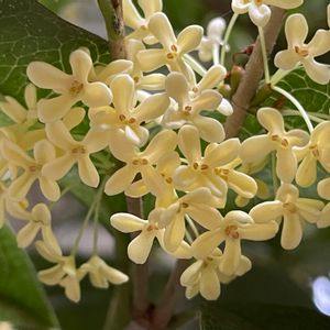 金木犀が咲いていたから銀木犀は? と思って見てみると、こちらも咲いていました🎶 この木の周りもとても良い香りが立ち込めていました🤍✨🍃 お花の色は淡いオレンジ色の金木犀より少し薄いクリーム色で、香りも金木犀より少し優しい気がします🤗 2本の🌳は4〜5m離れていますが、この辺り一帯良い香りに包まれていて、とても幸せな空間です💕