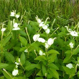 半夏生 (ハンゲショウ) 実家の畑に生えてました。 ドクダミ科。白いのは葉で花が終わると緑色になるそうです。