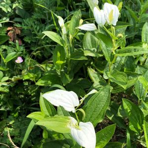 教えてください 好古園にあった植物です。 上の方が白です。 白いのは葉なのか花なのかもわかりません。 ちょっと距離があったので画像が小さくてすみません。 蛍を観た川辺りに生えていた植物と似てる気もします。