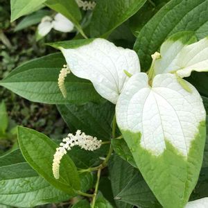 6月ごろ緑と白のコントラストが綺麗だった半夏生。 その後花が終わると葉っぱは、また緑に戻ると言う事を聞いていたので、今日訪れて見たところ、完全には戻ってはいないものの、薄緑になっていました😅 葉っぱによっては、虫さんの餌食になって無残な葉っぱが多々ある中、比較的綺麗だった葉っぱを探して📷しました。