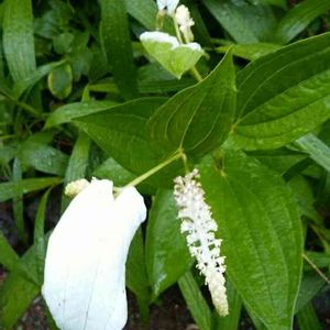 半夏生はとうに過ぎたけれど、森のハンゲショウはまだまだ元気です。(半化粧) 名前からも推測できるように中国原産とか。 saururus chinensisコショウ目ドクダミ科