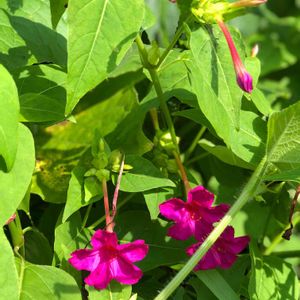 2020*9*16 晴れ☀️☁️ 【おしろい花】 まだまだ 元気に 咲いています。 花が、終わったら 根だけ残して 切ってしまいます😊 でも 春になったら 新しい葉っぱ🌱が、出てきて ピンク色の 花が、咲きます👩 手が かからない 優秀な花です✨
