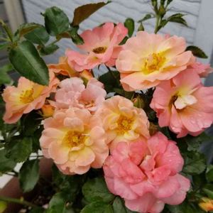 今日の花、バラ🌹 メルヘンツァゥバー ドリフトローズアプリコット インフィニティゴールド 後ろにちょこっとゴルデルゼ どんより天気だけど頑張ってます😤