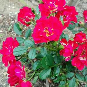 ミニバラのドリフトローズのレッド 花束みたいにたくさん咲いてきた けど相変わらず小さいσ(^_^;)
