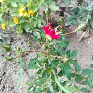 バラ 前掲のが2輪咲かせてくれました まだまだツボミがあり、秋の花を楽しめそうです。 枝作りのため花やツボミは取るんですが、今年は咲かせてしまいます。
