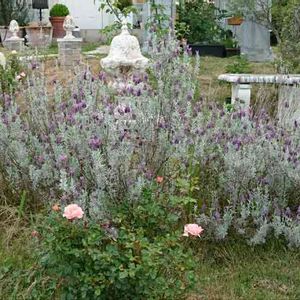 おはようございます(*^^*)🎶 今日は暑さが少し和らぎそうです✨ お庭のラベンダーが咲きました💗 剪定してないのでオブジェの高さまでラベンダーが来ちゃってる💦 花が終わったらカットしよ(*´∀`)✨