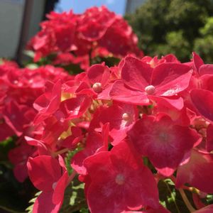 赤い紫陽花って 目に留まります❣️ 小さい頃この色の紫陽花は見たことなかった🤔