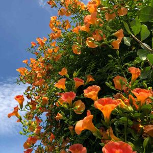 おはようございます🌞 今日のお花、ノウゼンカズラです。 実家に帰省していますが今日自宅に戻ります。 お墓まいりと海にも行けて美味しい雲丹も食べたし、早朝ゴルフも⛳️楽しみました。 お盆休み後半は何して過ごそうかなぁ。 カーテン洗ったり庭のお手入れもしたい💗 予定が無いのもいいものです😊