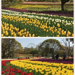 万博公園🌷🌷🌷 上のpicの先には太陽の塔✨ 下のpicの先には観覧車🎡 4月7日に投稿した時よりチューリップが満開になりました🌷✨🌷✨ 🌸が散っても次々とお花が咲いて春ってウキウキしますね💖💕