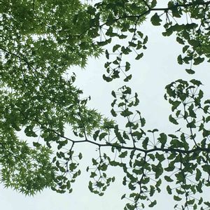 上を見上げると イチョウとモミジのコラボ🌱