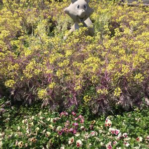 公園の花壇🍀 葉牡丹の花に埋もれそうな 君は誰?🐰?
