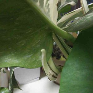 斑入りモンステラの新芽♥ 気根の生え方とちょっと 違うなって毎日観察してたら 新芽ちゃんだった♪ どんな葉っぱになるか楽しみ♪ 少し緑色がついたし、 これから切れ込みも 入ってくるのかな(*・ω・*)wkwk 新芽の奥に写ってる茎に 定規で線を引いたかの ような綺麗な緑の線が 入ってる(//∇//) 日々の成長が楽しみ♥
